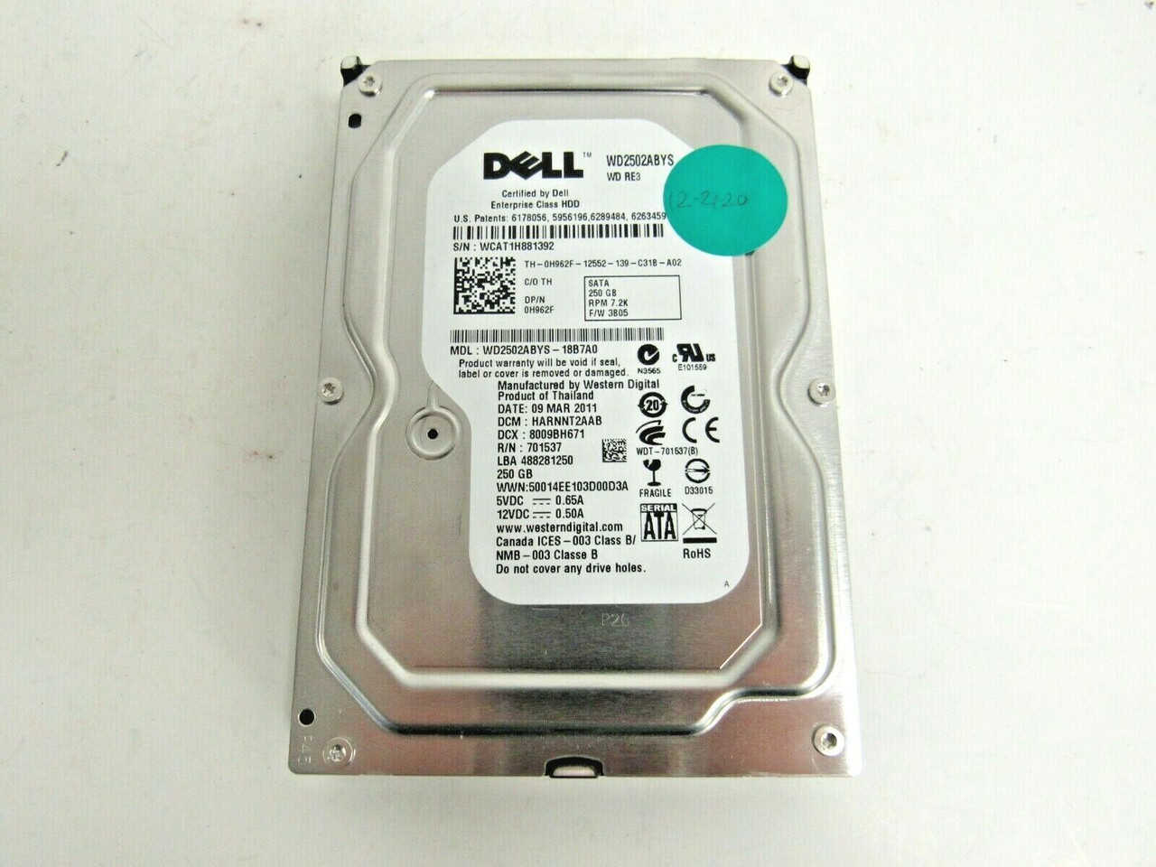 - Dell H962F Western Digital RE3 250GB 7200RPM SATA-2 16MB Cache 3.5" HDD 35-4